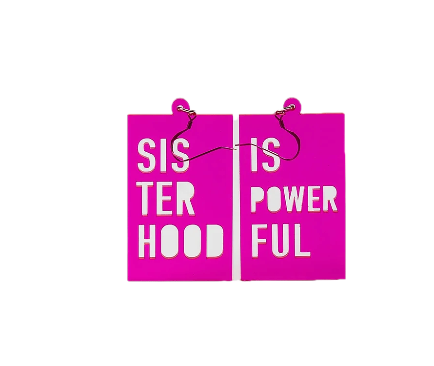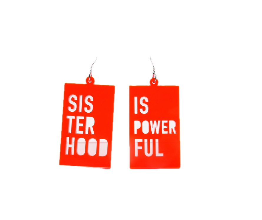 Do You Ear Me neon "Sisterhood is Powerful" earrings. Silver clasps. Made of 100% recycled plexiglass.